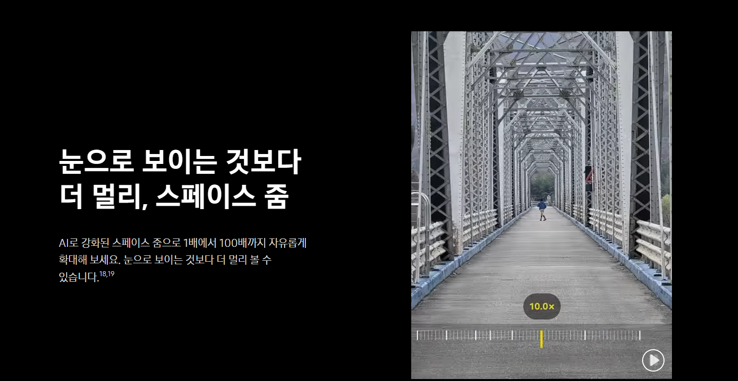 AI 촬영 기능 : AI 기반의 촬영 모드가 탑재되어, 누구나 전문가처럼 사진과 영상을 찍을 수 있습니다.