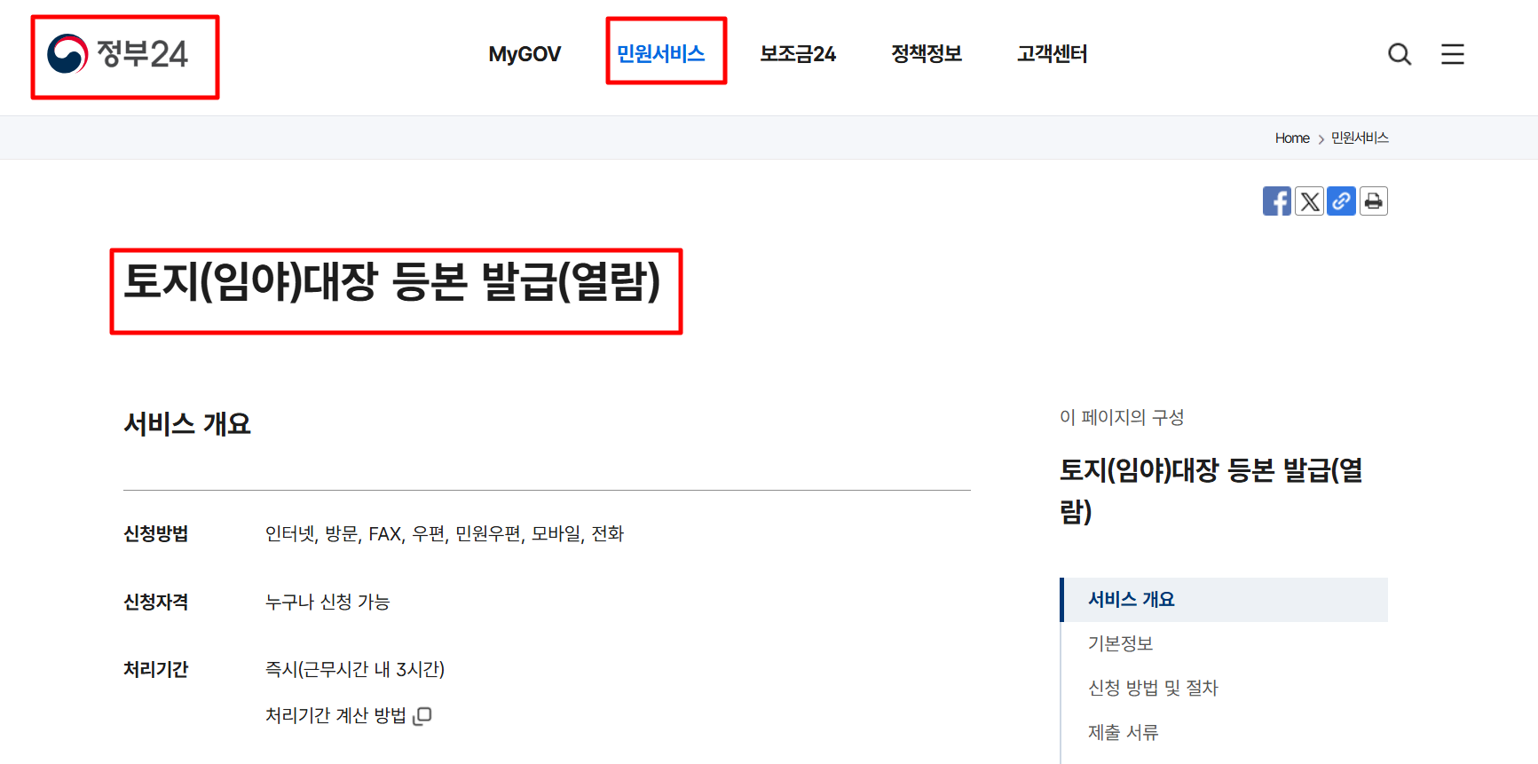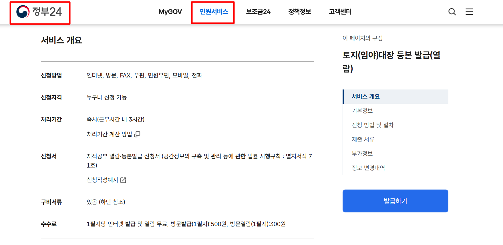 2. 토지대장 무료열람 및 발급신청방법