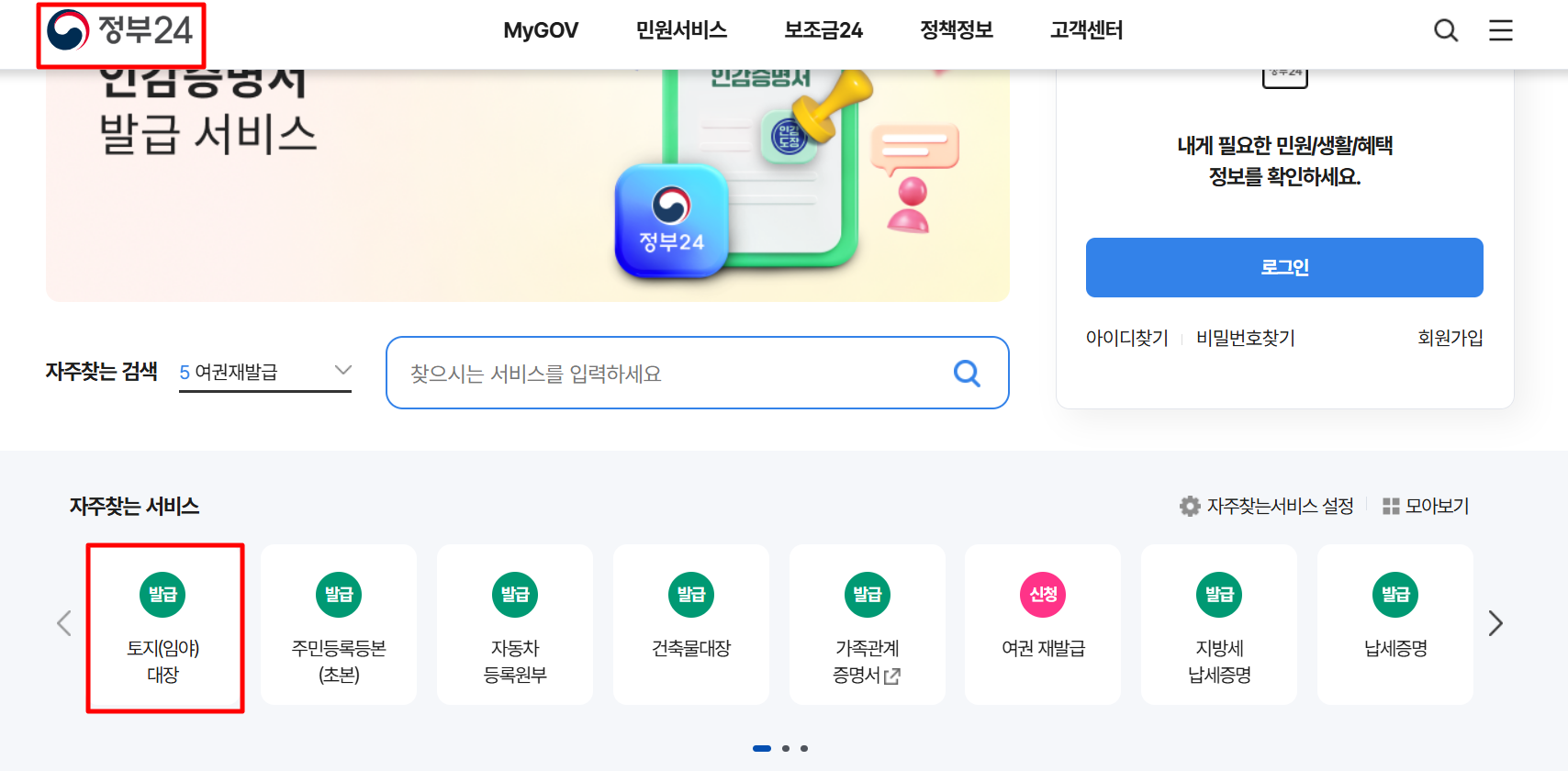 온라인 무료 열람 방법 (정부24 활용) 정부24(https://www.gov.kr)에서는 토지대장을 무료로 열람할 수 있습니다. 다음 단계를 따라가세요.